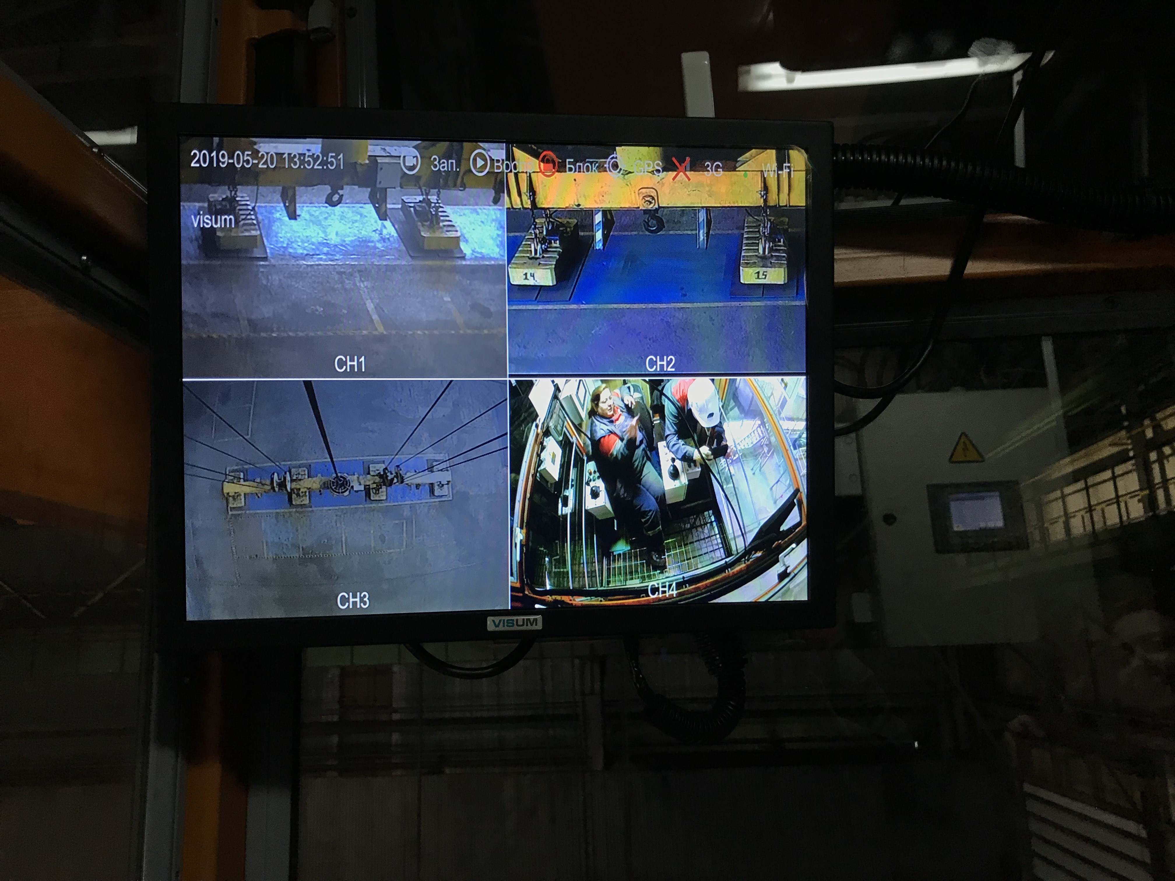 В данной статье рассматривается установка системы видеонаблюдения ViSUM на мостовом кране. Система должна облегчить работу оператора крана в условиях недостаточной видимости грузозахватного механизма и груза. На кран устанавливается 4 камеры видеонаблюдения класса защиты оболочки IP69K. Одна камера устанавливается на грузовой тележке крана, вторая камера устанавливается под кабиной крана, третья камера устанавливается на корзине крана, и четвертая камера устанавливается в кабине для контроля за работой оператора крана. Принципиальная схема установки видеокамер на кране приведена ниже.
